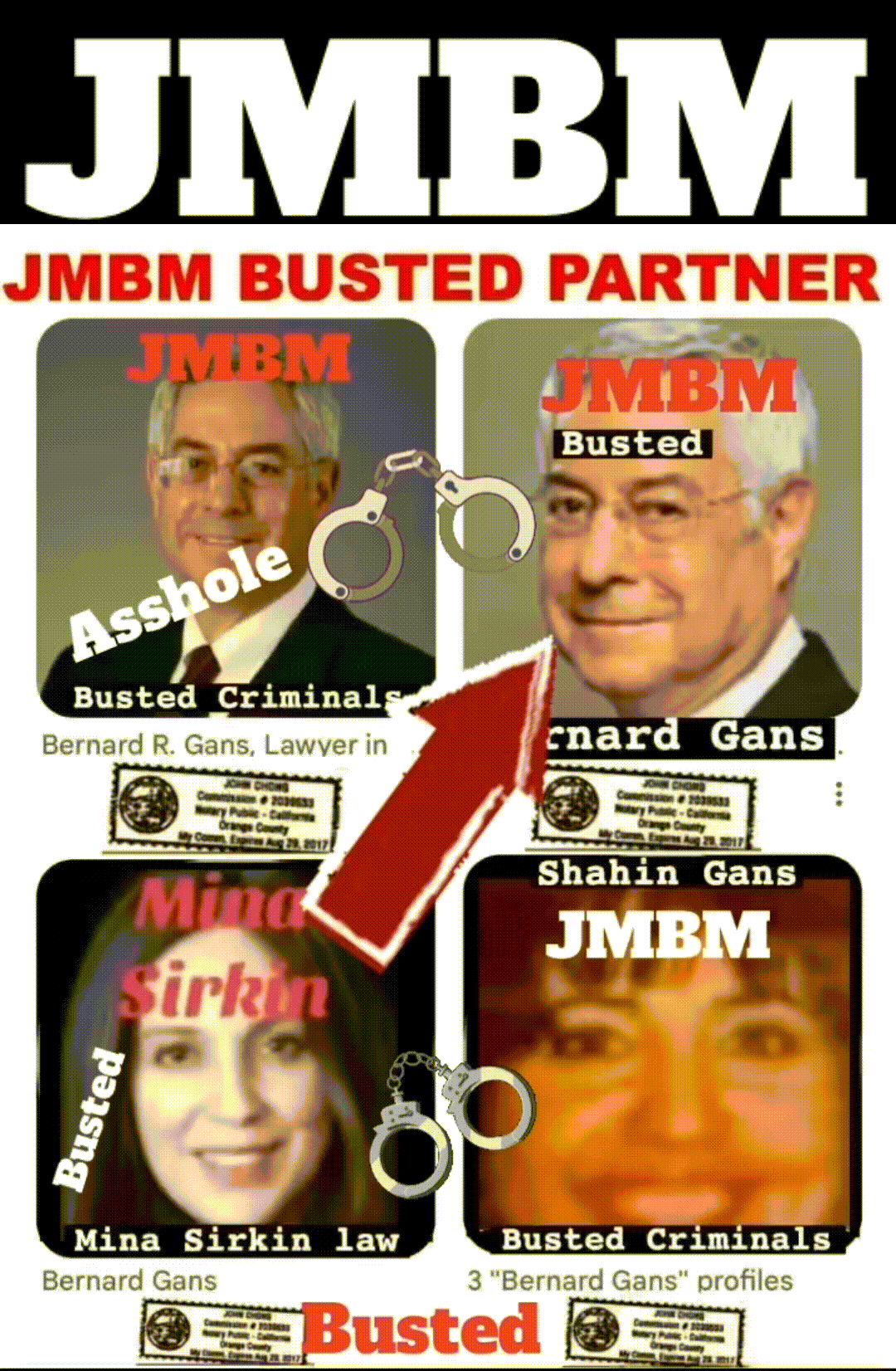 Suing JMBM partner $500,000,000,000.00 Busted criminal attorneys Jeffer Mangels Butler & Mitchell LLP lawyer Bernard Reginald Gans #57068 Bernard Gans Mina Sirkin law group JMBM killed my mom to get her fortune. Suing JMBM partner $500,000,000,000.00 Busted criminal attorneys Jeffer Mangels Butler & Mitchell LLP lawyer Bernard Reginald Gans #57068 Bernard Gans Mina Sirkin law group JMBM killed my mom to get her fortune..